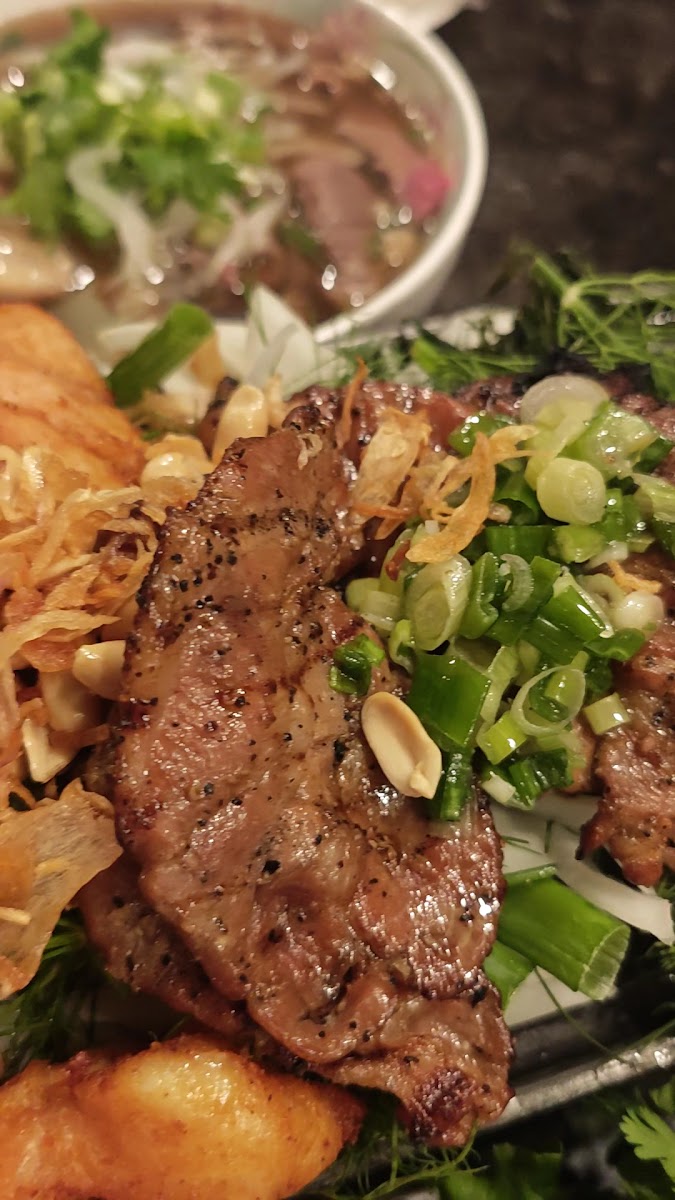 While pho is certainly the star of the menu, Pho Kim Long offers a variety of other classic Vietnamese dishes worth exploring. Their vermicelli bowls (bún) are a hit with locals, served with grilled meats such as pork or shrimp, accompanied by crispy spring rolls and a tangy fish sauce dressing. The grilled pork in the vermicelli bowl is a standout, with its smoky flavor and juicy texture making for an irresistible combination. Another must-try is their bánh mì, a Vietnamese sandwich made with a crispy baguette stuffed with savory fillings like char siu pork, pate, and pickled vegetables.